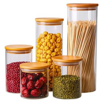 Potes de Vidro p/ Mantimentos Tampa Bambu